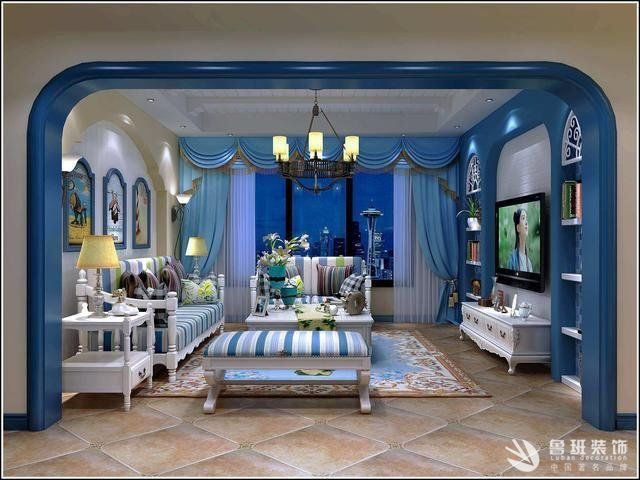 地中海風格裝修非常具有地中海風情,常用的藍白色的家具,非常具有浪漫氣息。拱門、鵝卵石、馬賽克等