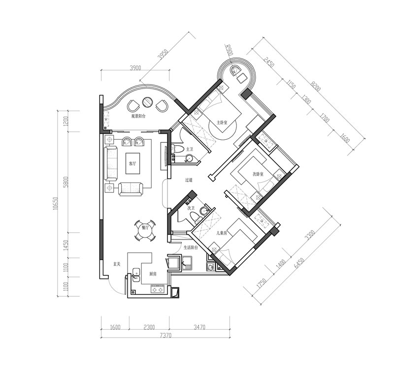 本案例是寰宇天下臨江戶型戶型,這個(gè)房子大部分時(shí)間主要是女主人自己居住,女主人是一位30幾歲事業(yè)小成的優(yōu)雅氣質(zhì)單身女性,偶爾母親會(huì)過來居住,廚房做了一個(gè)開放式處理,讓廚房空間得以延伸,且增加廚房互動(dòng)空間,單獨(dú)的生活陽臺(tái)避免了占用景觀陽臺(tái)最佳觀景區(qū)的尷尬,讓無限江景盡收眼底,本案風(fēng)格偏向于小法式輕奢,復(fù)合女主人的品味的想法